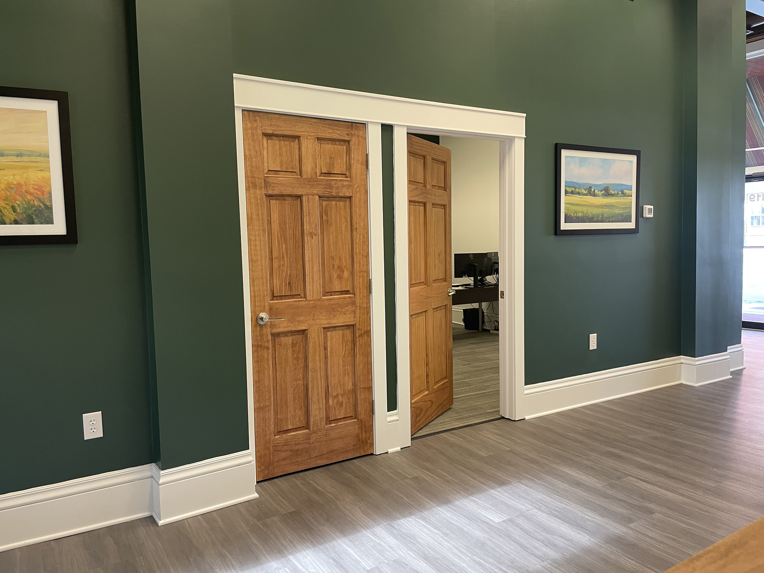 The Historic Partridge Building, Located in downtown Seneca Falls, is now home to a very clean and classy Edward Jones branch office completed by Faithful Contracting. A stunning 1200 sq. ft. unit, built to spec with a beautiful trim out throughout the space, towering 14’ tall fully encased poplar ceilings & exposed mechanicals giving a historical & industrial appearance.