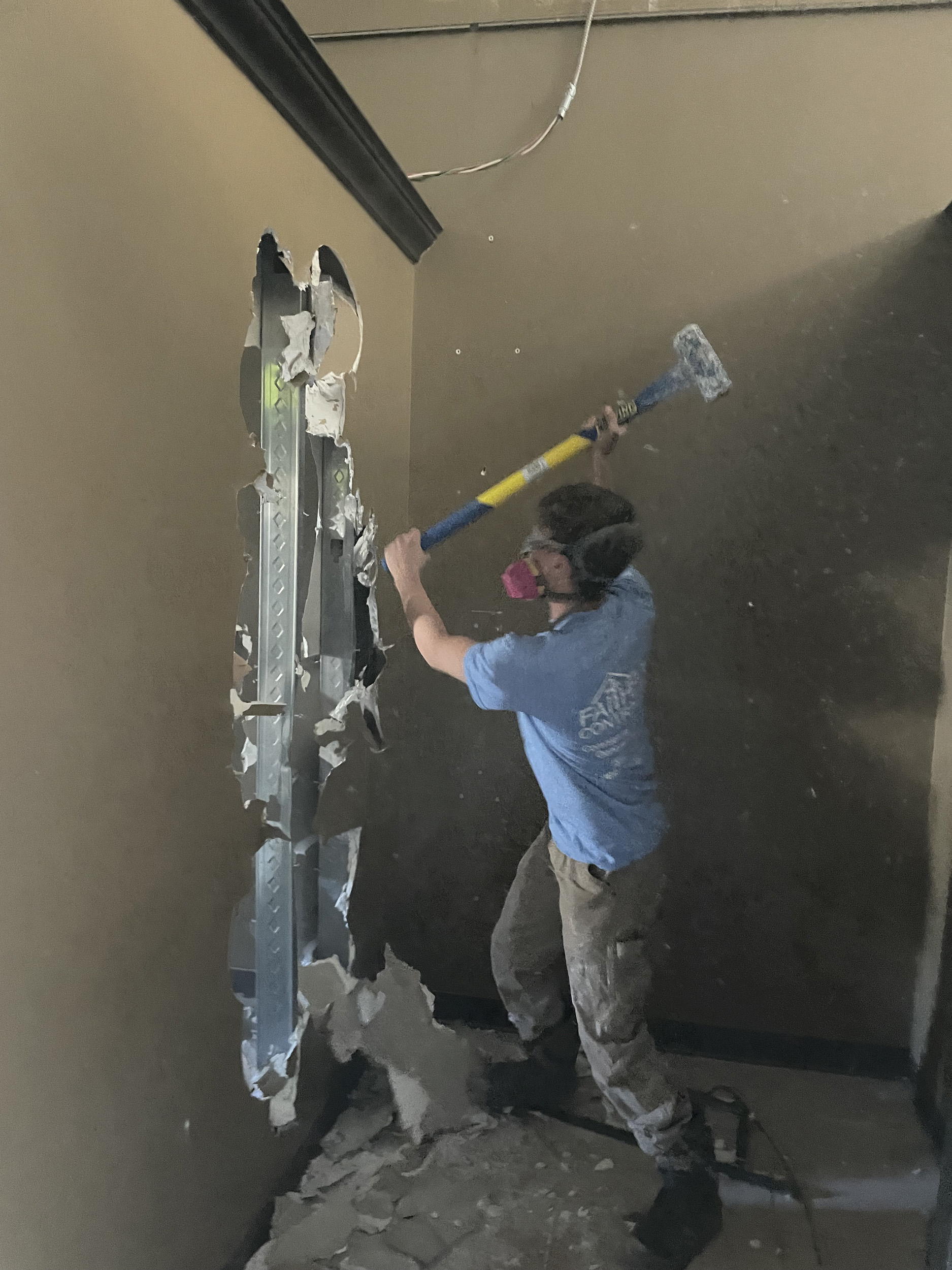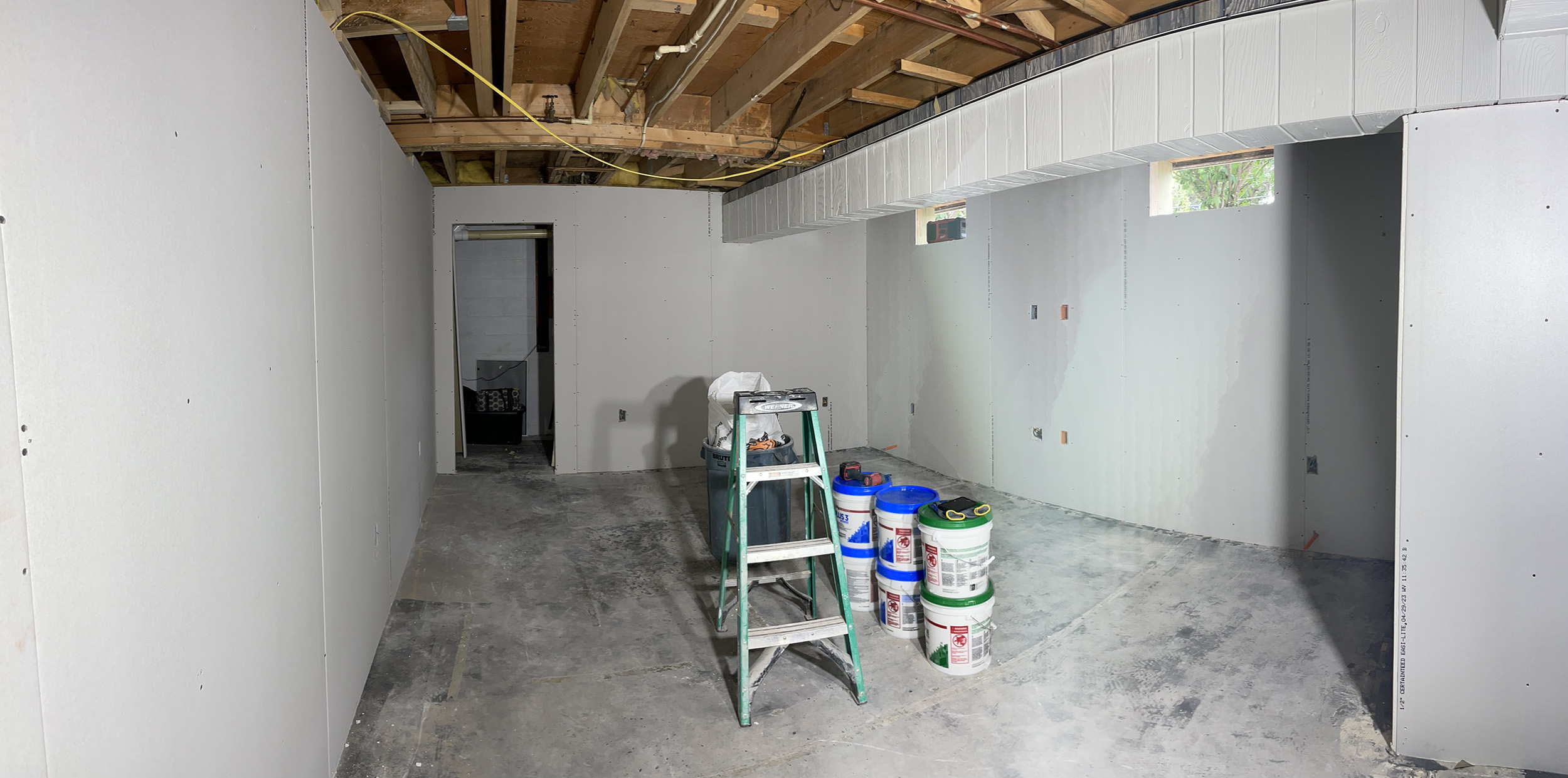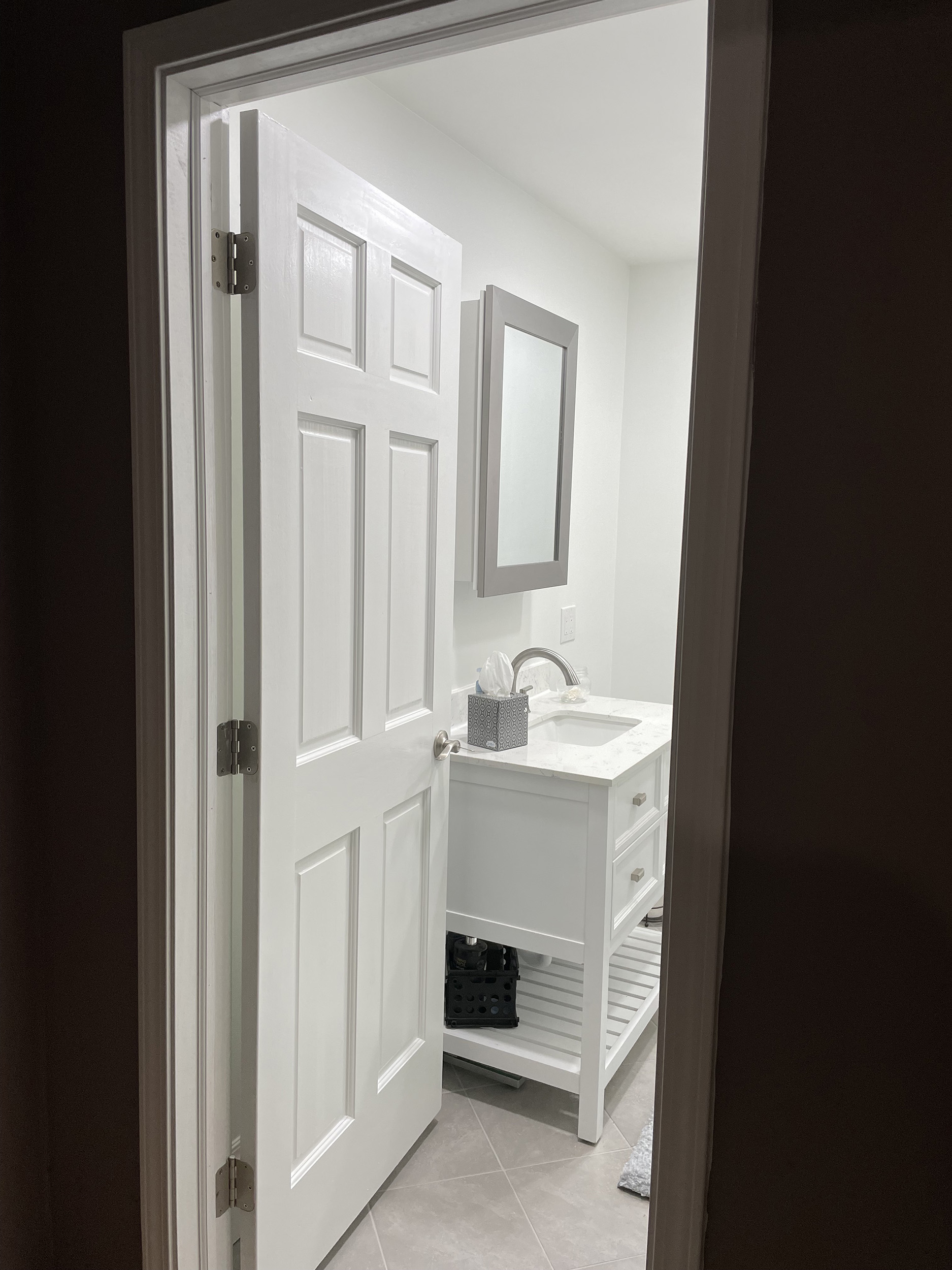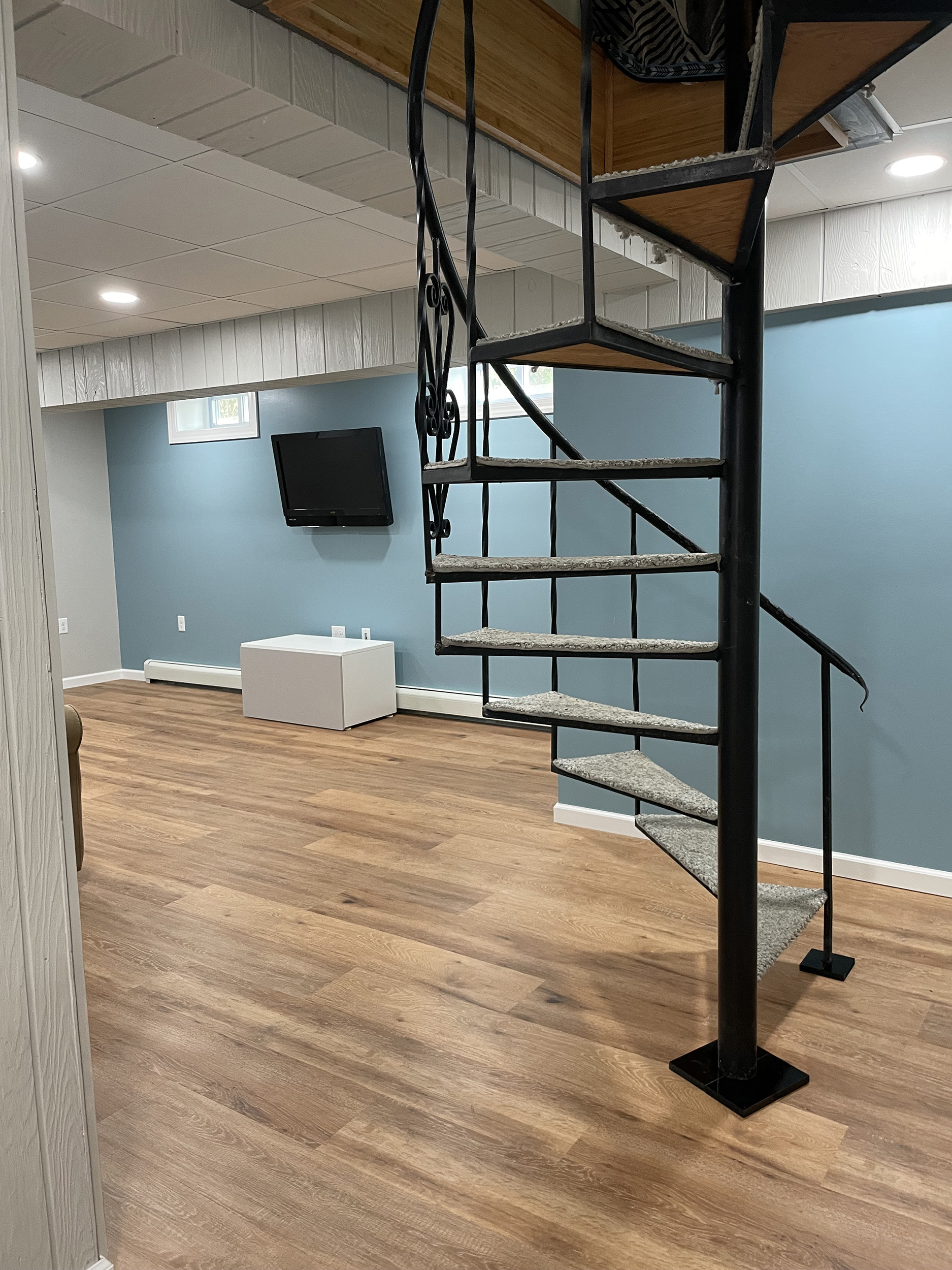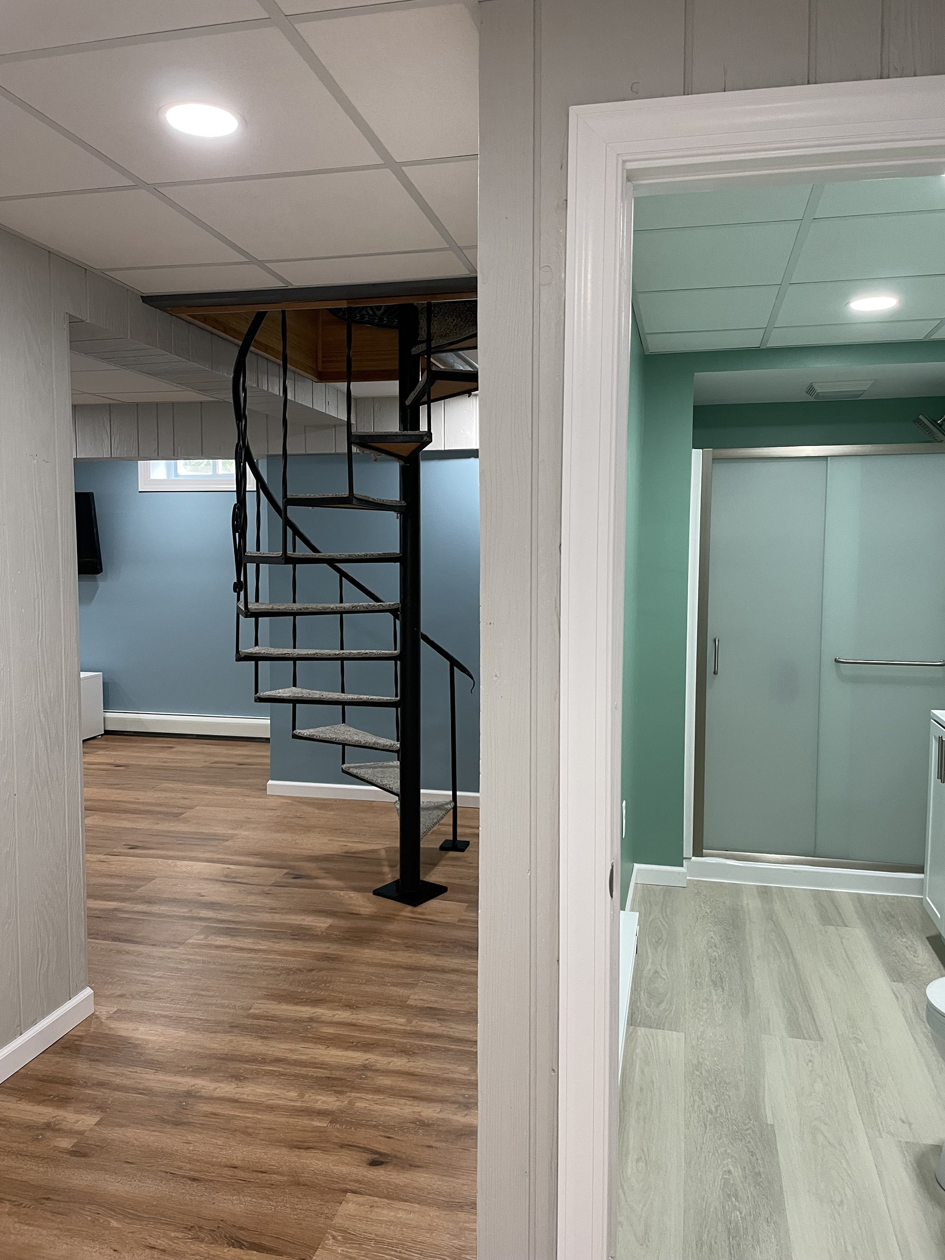This scope of work was a complete gut and remodel. Partition walls were built to create a 250 sq. ft. bedroom with a custom closet. Within the bedroom, A 4’ x 4’ void was cut out of the foundation to make way for an egress window. The bathroom from the 60s was demoed and remodeled. LVT plank was installed in common areas throughout.