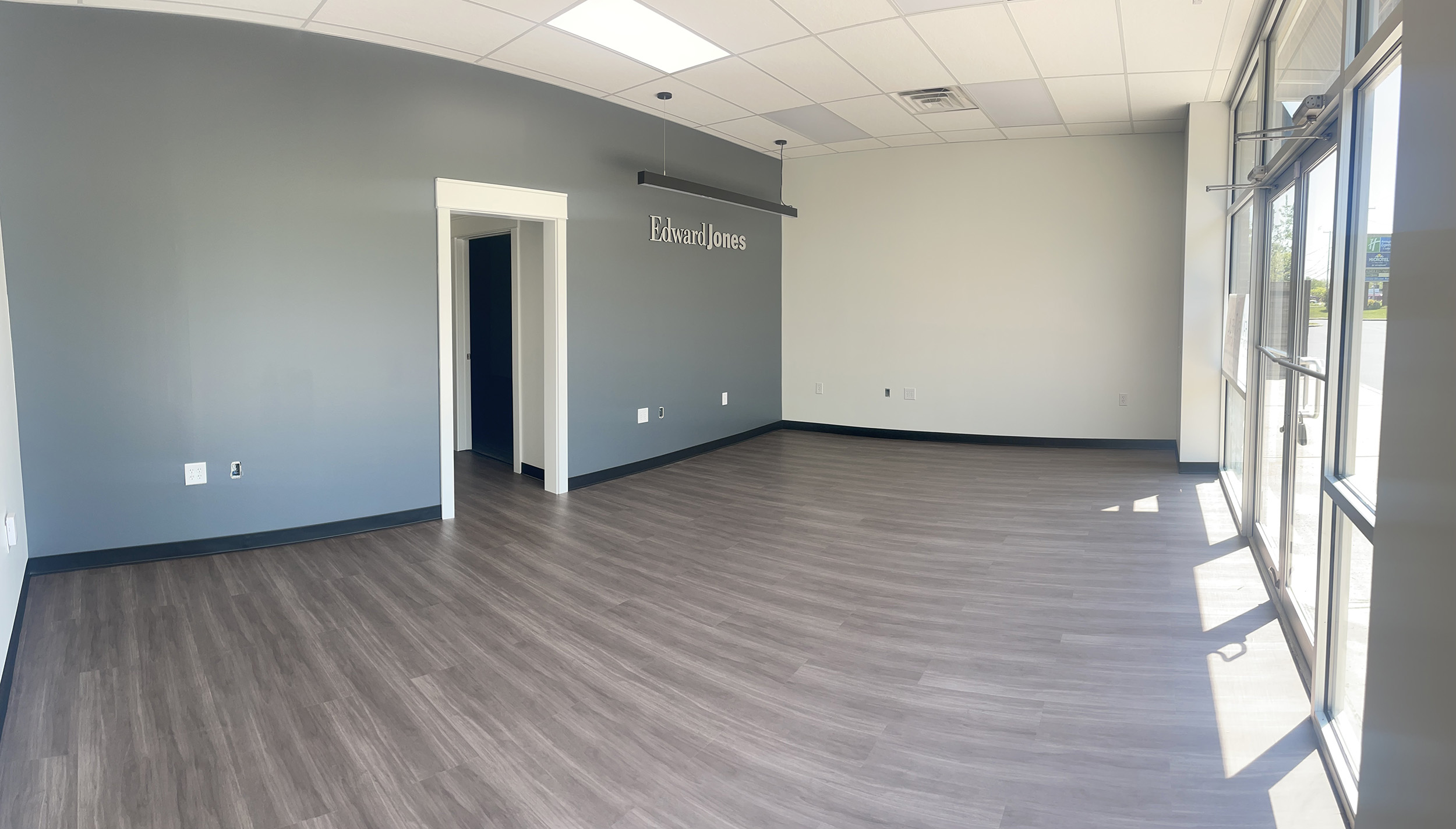The Geneva NY branch office is another build out completed by Faithful Contracting for Edward Jones. An entirely newly constructed 1200 SqFt space built to spec with acoustical ceilings throughout, LVT plank in common areas, carpet tile in the conference room & office giving this space a clean and modern look.
