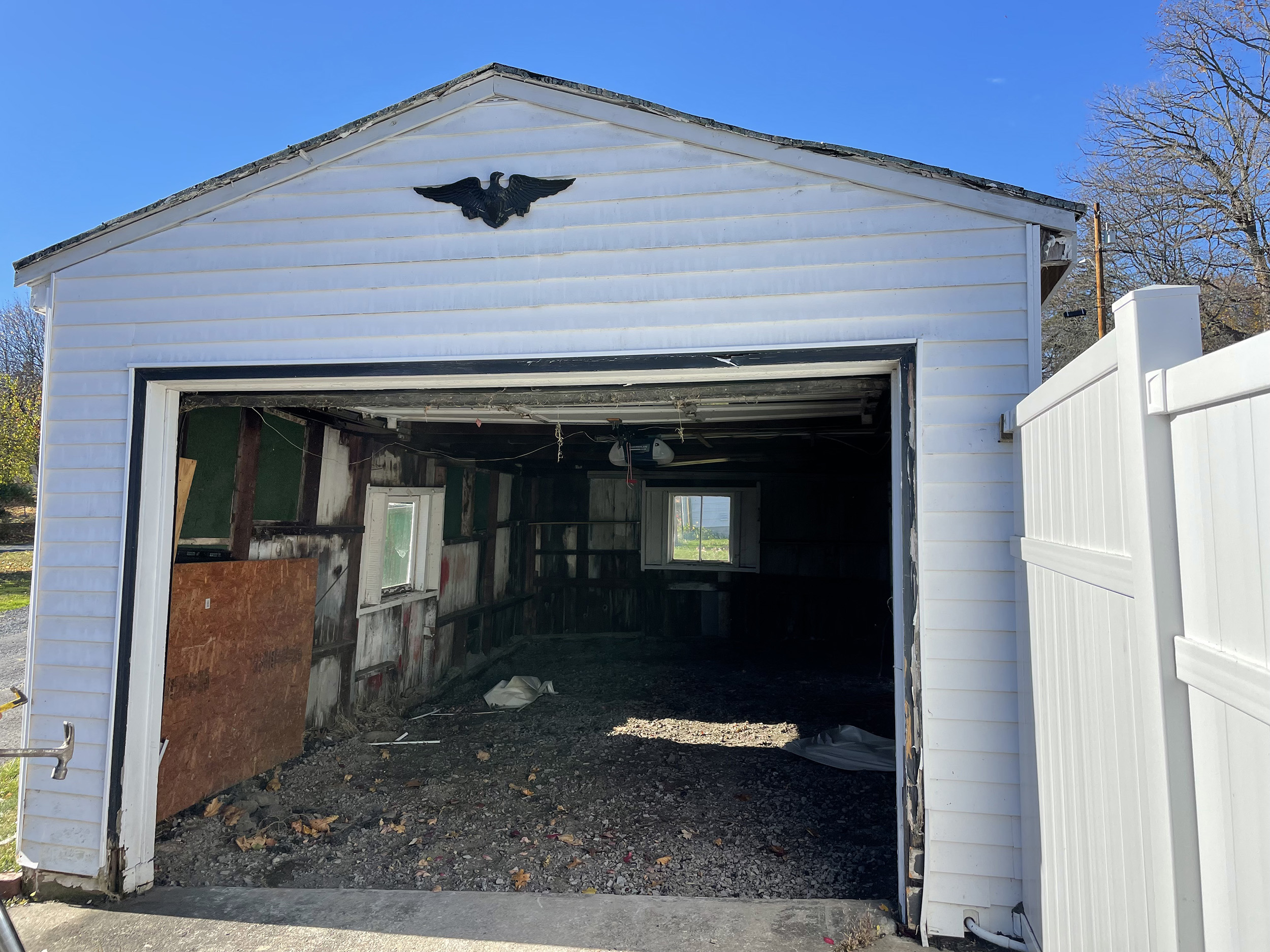 This project was completed by Faithful Contracting for a return customer. Work included demolition of an existing decaying structure, Pole barn style framing, Rafter framing, 50amp Electrical service, Concrete smooth finish floor, vinyl siding, Vinyl soffit, Metal Roof and Facia.